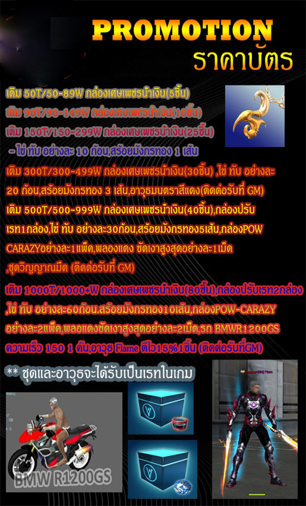 โปรโมชั่นเติมเงินได้ของตามราคาบัตรที่เติม