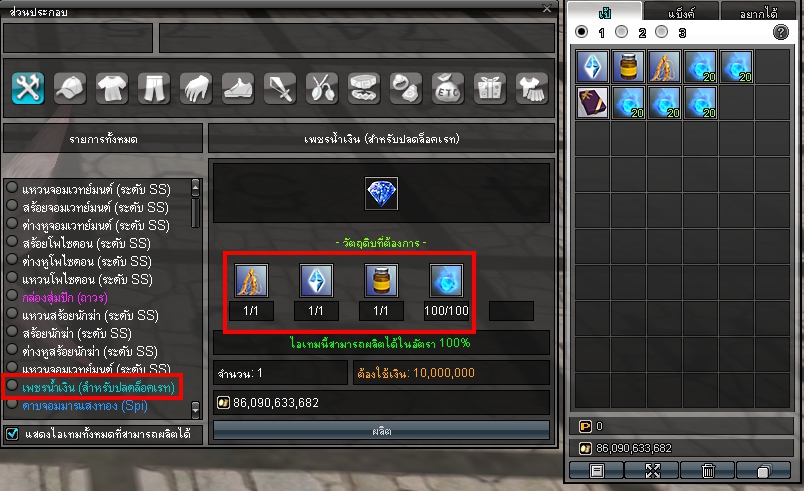 • ซื้อไอเทมที่ชื่อว่า คริสตรัลระดับสูง 1 ชิ้น (หาซื้อได้ที่ NPC ผสมของที่ตลาด 2)